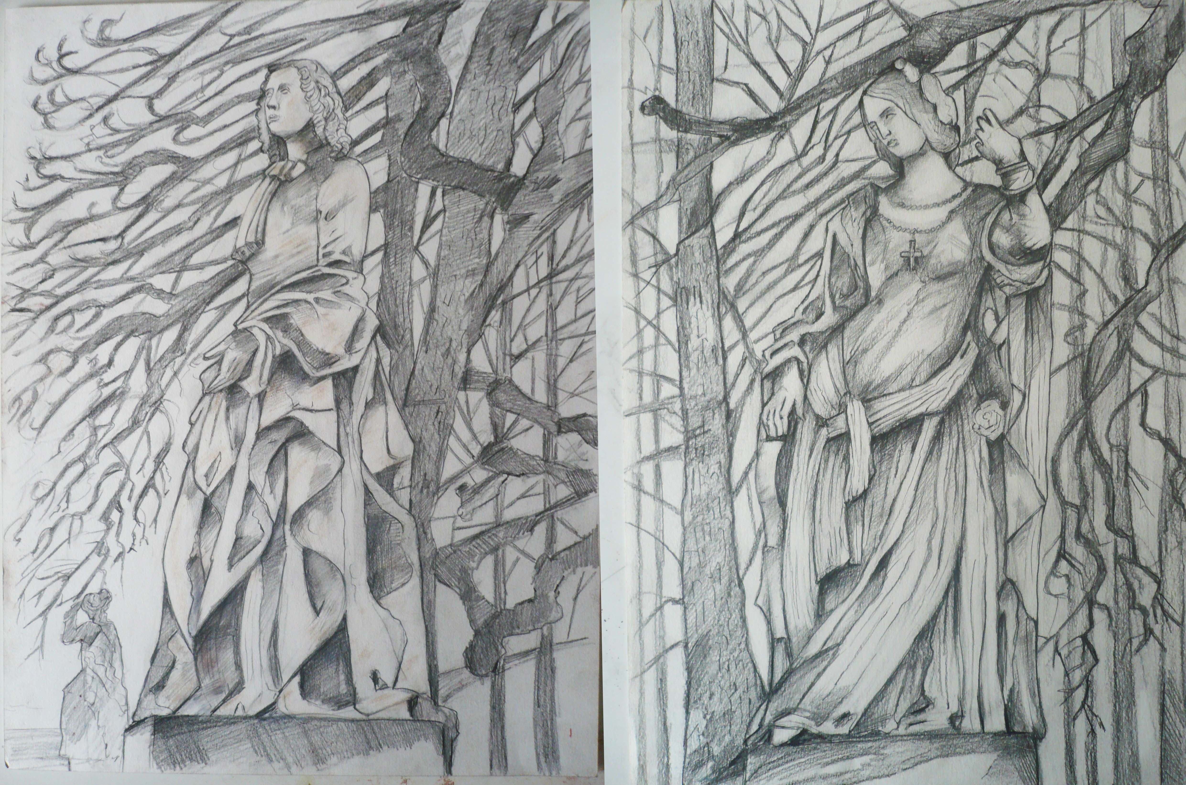 Dessins réalisés au musée d’Orsay, sur place, crayon et criterium.